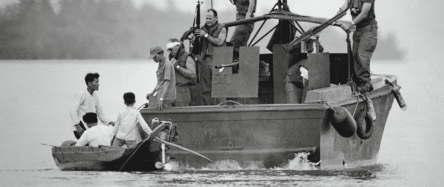 Population and resources control operations were aimed at splitting the Viet Cong insurgents from the civilian populations on whom they preyed. In the maritime counterinsurgency campaign, this included disrupting and terminating their local coastal and riverine supply lines through constant patrolling, especially along Vietnam’s extensive coastline and myriad inland waterways. A flotilla of small coastal craft, especially Navy PCF “Swift” boats, Coast Guard patrol boats, and South Vietnamese Navy Yabuta junks, checked hundreds of sampans, fishing boats, and other civilian small craft for contraband—including weapons and rice—to prevent the civilian populace from supporting the insurgents and the insurgents from intimidating the civilians. U.S. Navy river patrol boats (PBRs) and Vietnamese Navy junks and other small craft performed similar duties on the inland canals and rivers of the Mekong Delta